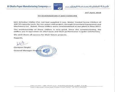 Letter of Appreciation from Al Dhafra Paper Co., Abu Dhabi